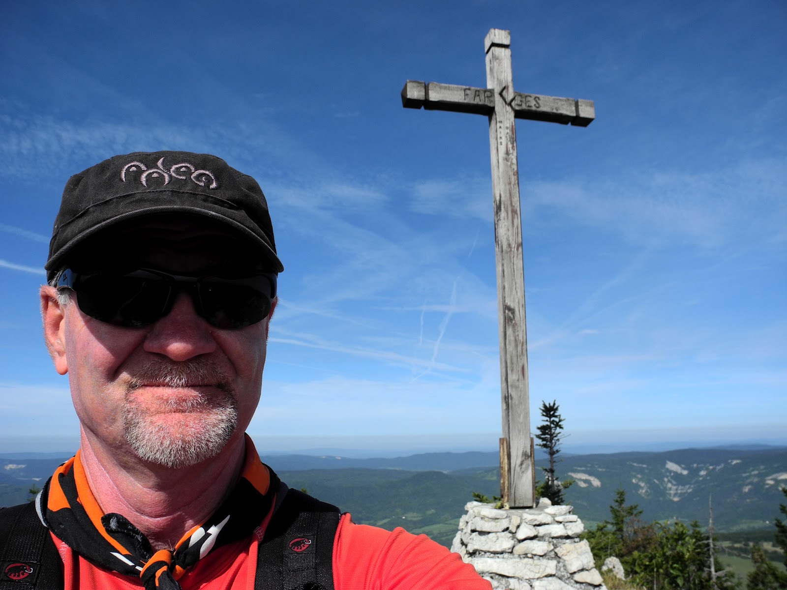 The goal of the day: Under the iron cross at Crêt de la Goutte.